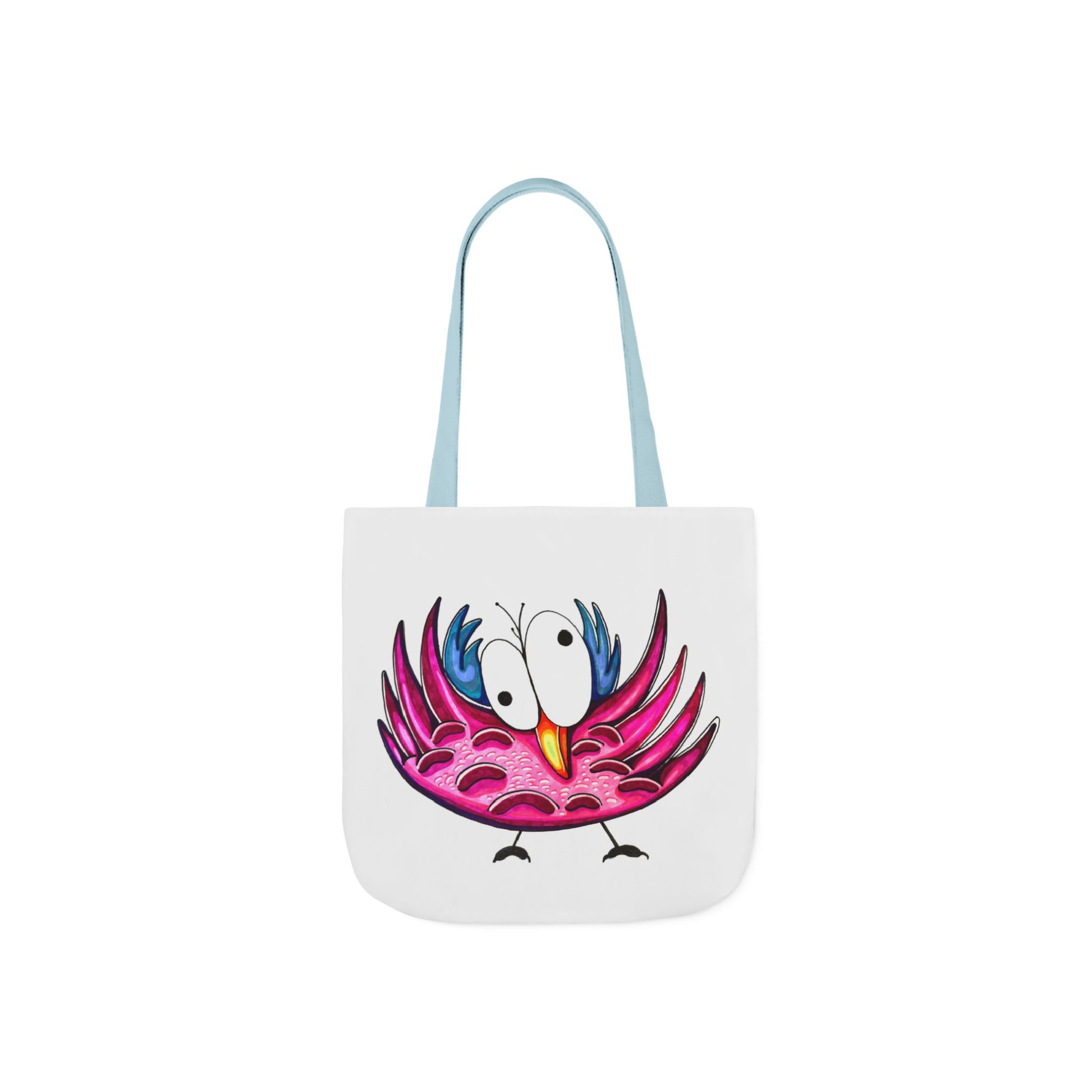 Canvas Tote Bag with Whimsical Pink Bird Design
