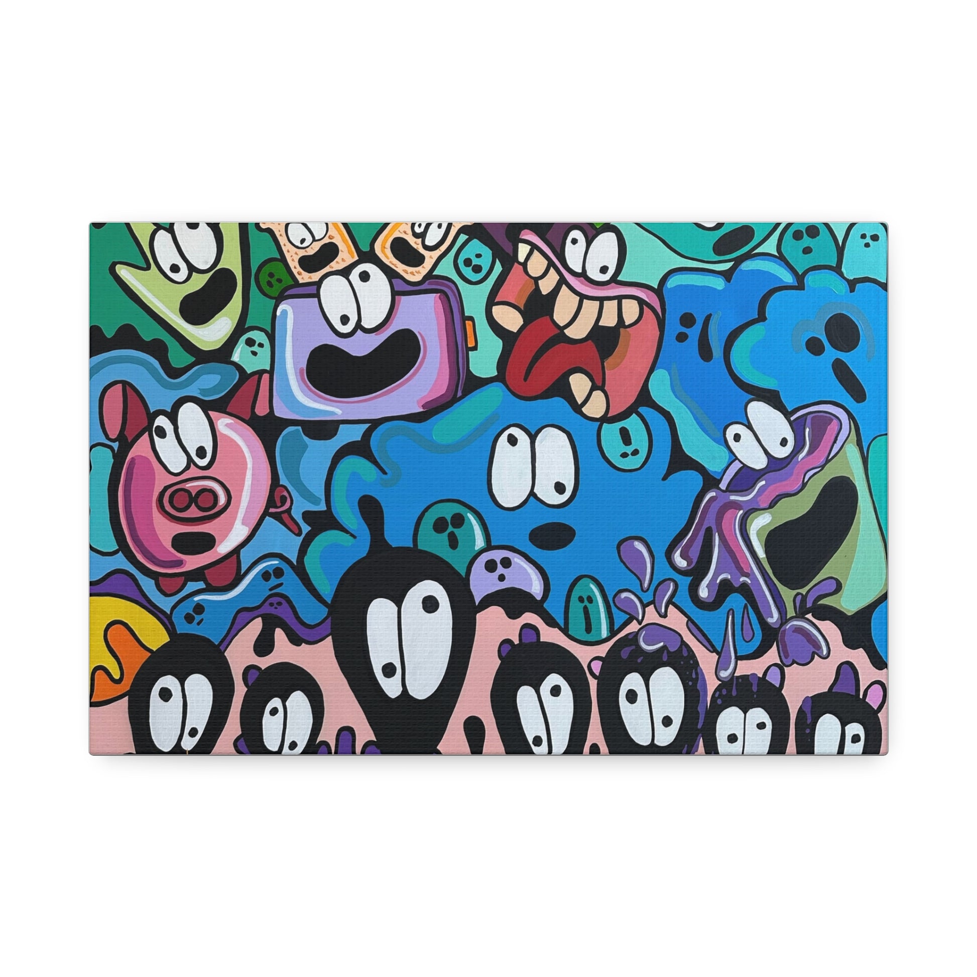 Transform your space with this vibrant canvas art piece! This stunning canvas features an explosion of colors and whimsical characters, bringing a playful atmosphere into any room. Perfect for brightening up your living room, bedroom, or office, this canvas adds uniqueness and personality to your decor. Ideal for art lovers, collectors, or anyone looking to create a joyful environment. This piece is fantastic for celebrations, housewarmings, or as a cheerful gift for birthdays and holidays. The lively design makes it a great conversation starter and is perfect for both kids and adults alike!