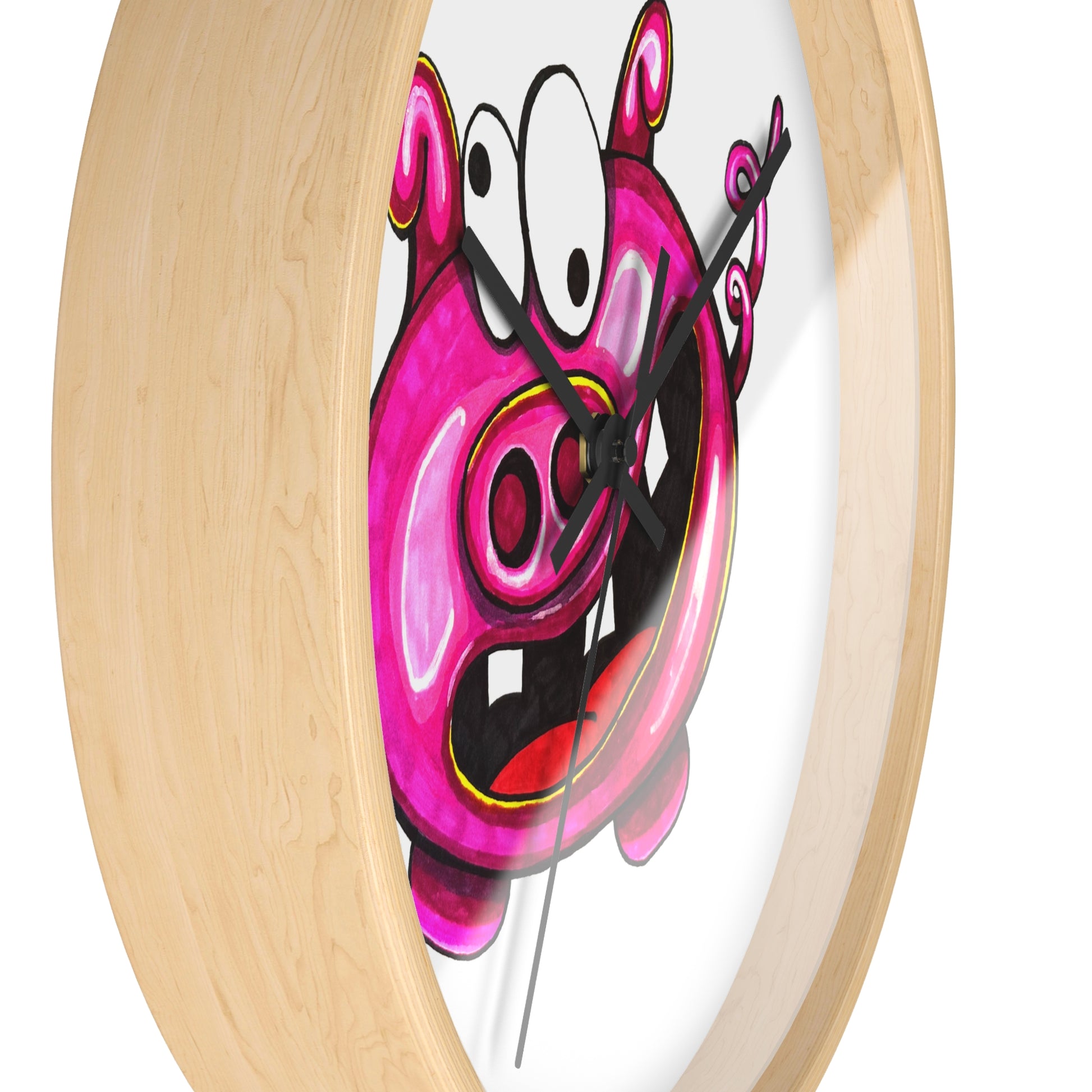 A playful wooden wall clock that brings bold color and cartoon energy to any room. The bright magenta character with wide, googly eyes and an exaggerated open mouth pops against the clean white face, turning timekeeping into a cheerful moment. The silent sweep mechanism keeps minutes calm, while the natural wood frame and plexiglass face add warmth and durability. Hang it in a bedroom, playroom, or creative workspace to add a fun, lively accent that sparks smiles and starts conversations.